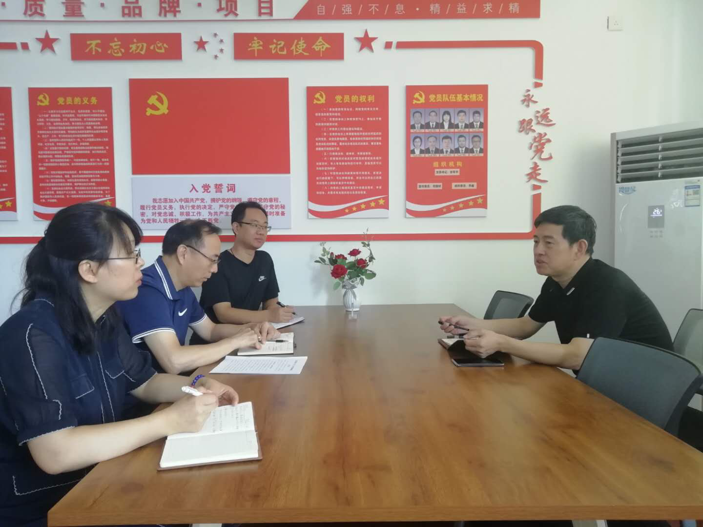 秦海金对质量发展处班子党风廉政建设工作表示了充分的肯定。他指出,质量发展处支部在规范党内政治生活、加强意识形态工作和落实“一岗双责”等方面做了详细的总结,上半年各项工作有序开展,成效不错。秦海金强调,领导班子要戒骄戒躁,继续发挥职能作用,强化理论武装,自觉守好底线,严格按制度办事,不断巩固“不忘初心、牢记使命”主题教育成果。