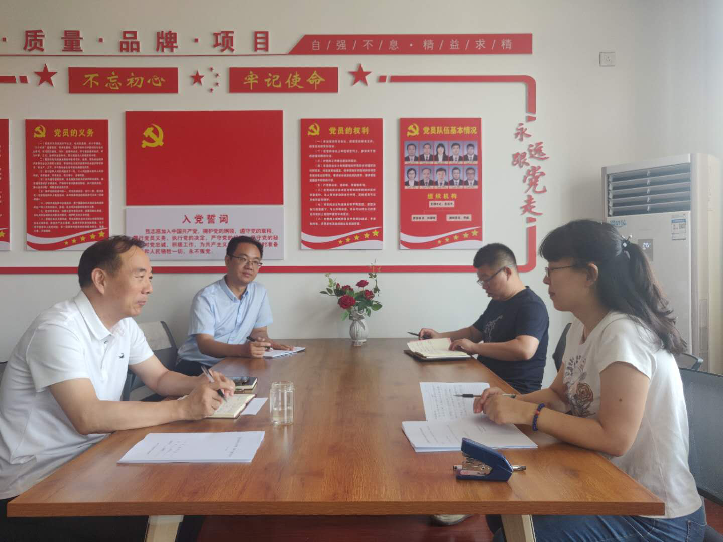 会议开始,支部书记岳军平就开好专题民主生活会提出具体要求,并组织学习林海案件;会议第二项议程,书记岳军平代表班子对照检查;会议第三项议程,参会人员逐一发言作自我批评,其他与会人员对其开展批评;最后,书记岳军平对专题民主生活会进行总结发言。